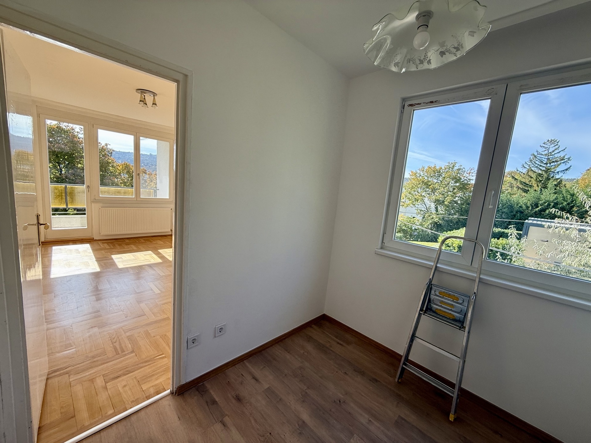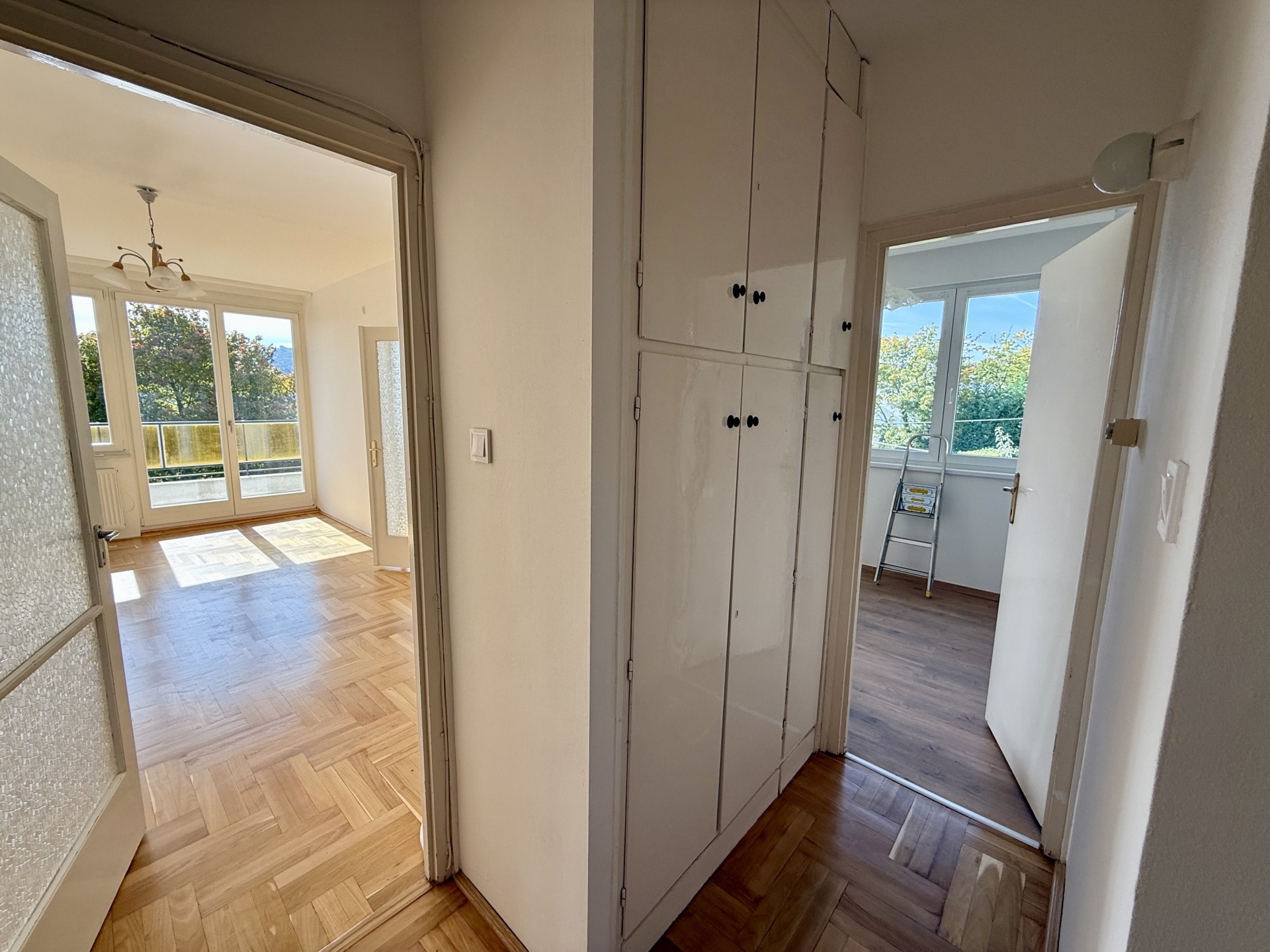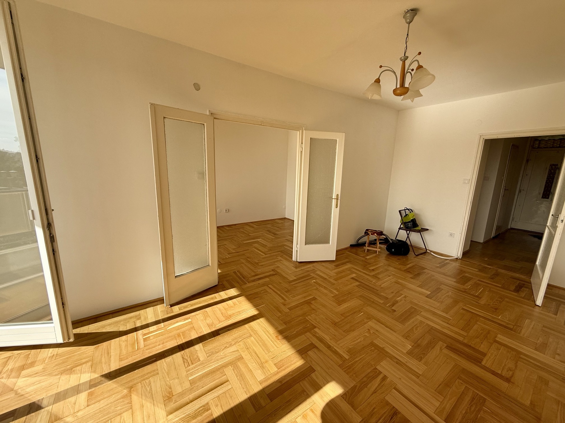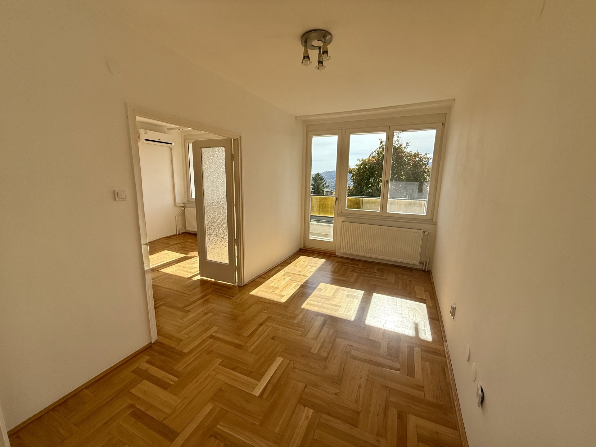 A lakás elrendezése átgondolt és élhető: két kényelmes szoba, étkező, valamint egy 8 m²-es erkély tartozik hozzá, ahonnan örök, elvehetetlen panoráma nyílik. A parketta frissen felcsiszolt és újralakkozott, a falak frissen festettek, a nyílászárók pedig 1,5 éve cserélve lettek új, minőségi fa ablakokra.