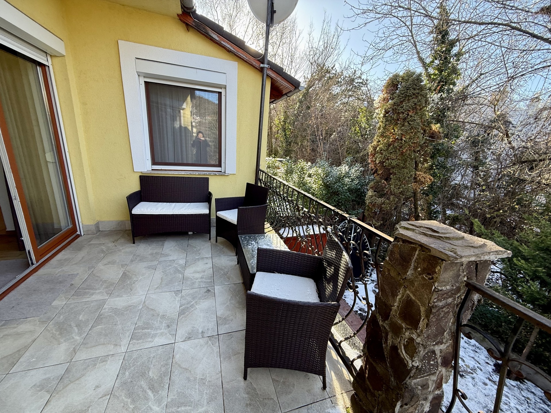 Budapest II. kerületének egyik legkedveltebb, zöldövezeti részén, Törökvészen, a Rózsadomb Center közvetlen közelében eladó egy kivételes adottságokkal rendelkező, 1. emeleti, nettó 115 m²-es, 4 szobás lakást egy 2006-ban épült, 6 lakásos, igényes tégla társasházban. Az ingatlan nyeles telek végében helyezkedik el, így teljesen szeparált az utcától, rendkívül csendes és nyugodt környezetet biztosít, miközben a városi infrastruktúra perceken belül elérhető.