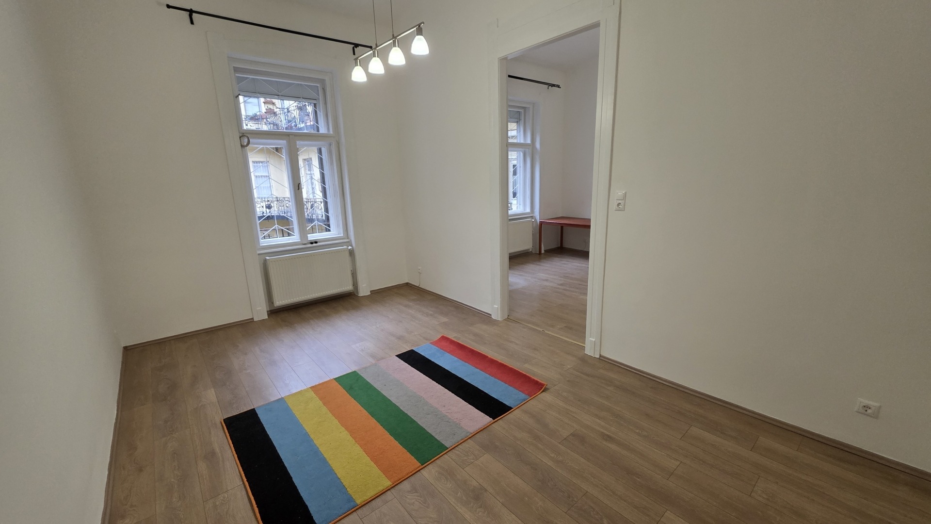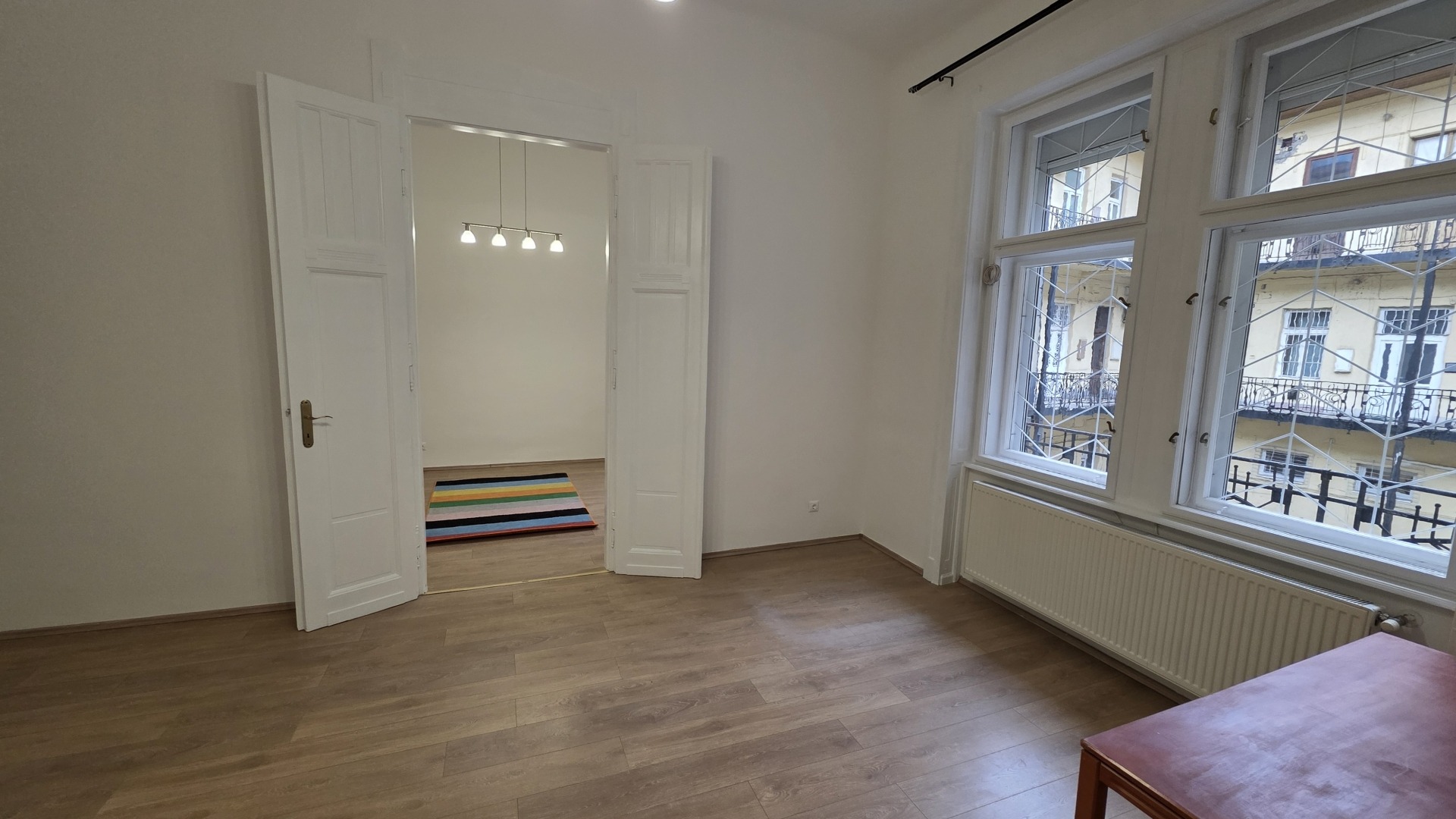 Budapest IV. kerület, Árpád utcában eladó egy 57 m² es, 1. emeleti, 2 szobás, 2025-ben teljes körűen felújított (víz, villany), világos, K-i és D-i tájolású tégla lakás. Külön fürdőszoba és WC helyiség. Csendes, a központi elhelyezkedésből semmi nem hallatszik, az ablakok a belső udvarokra néznek. A polgári lakás 3,7 méteres belmagasságának köszönhetően igény szerint galériázható, így kialakítva plusz élettereket.