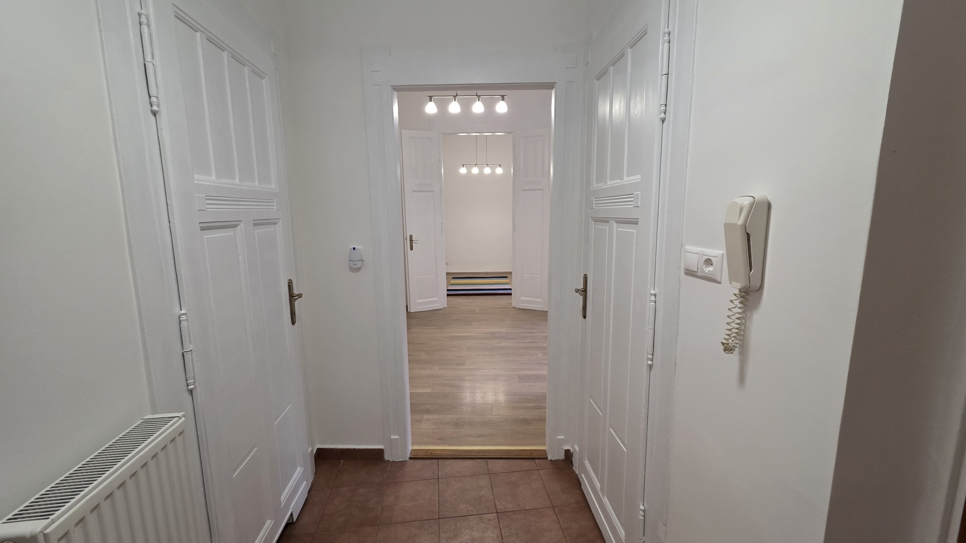 9 ponton záródó bejárati biztonsági ajtó. Alapterület: 57 m², Szobák száma: 2, Világos, ABLAKOS konyha, Külön fürdő és WC, Emelet: 1., Belmagasság: 3,7 m, Tájolás: Keleti – világos, napfényes terek, Állapot: Teljes körűen felújított (2025), Fűtés: Ariston 24 kW os kombi gázkazán, Nyílászárók: felújított fa ablakok, Elektromos redőny + szúnyogháló, Villamos hálózat: réz vezetékek, 3×16 A, fi relé, Extra plusz tárolási lehetőség a folyosón: 2,5 m². A világítótestek, karnis, függönyök az eladási ár részét képezik.