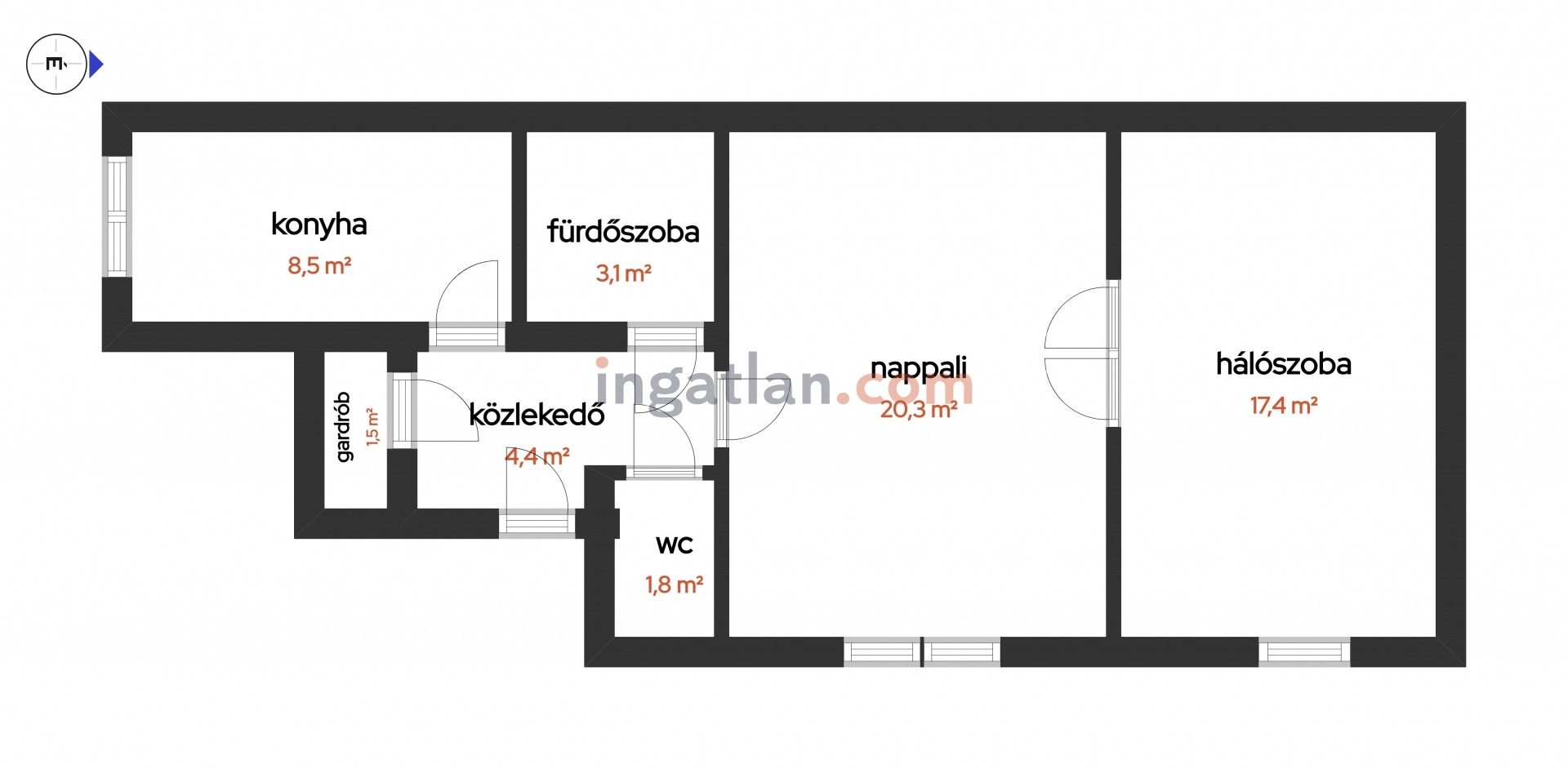 | Alapterület: | 57 m2 |