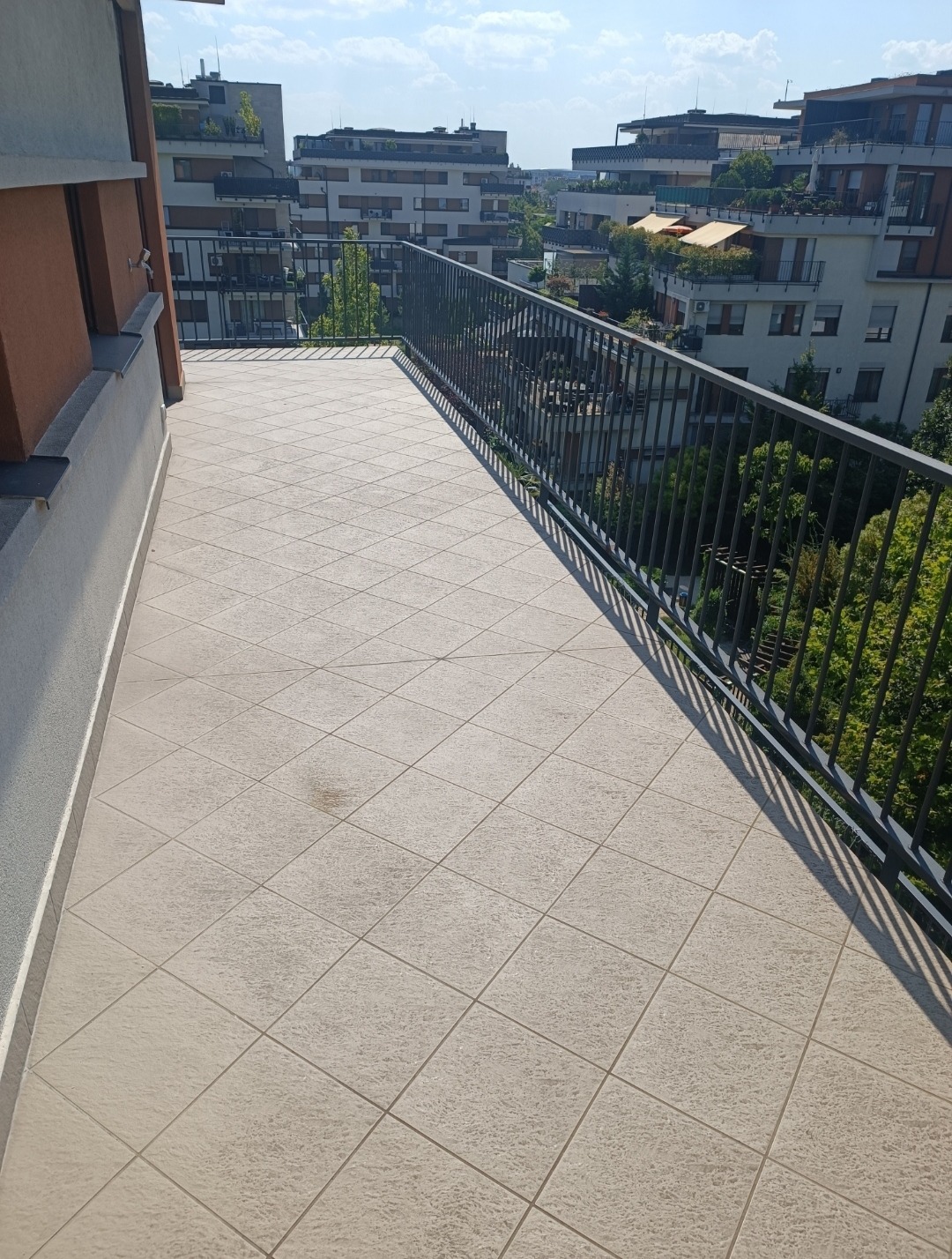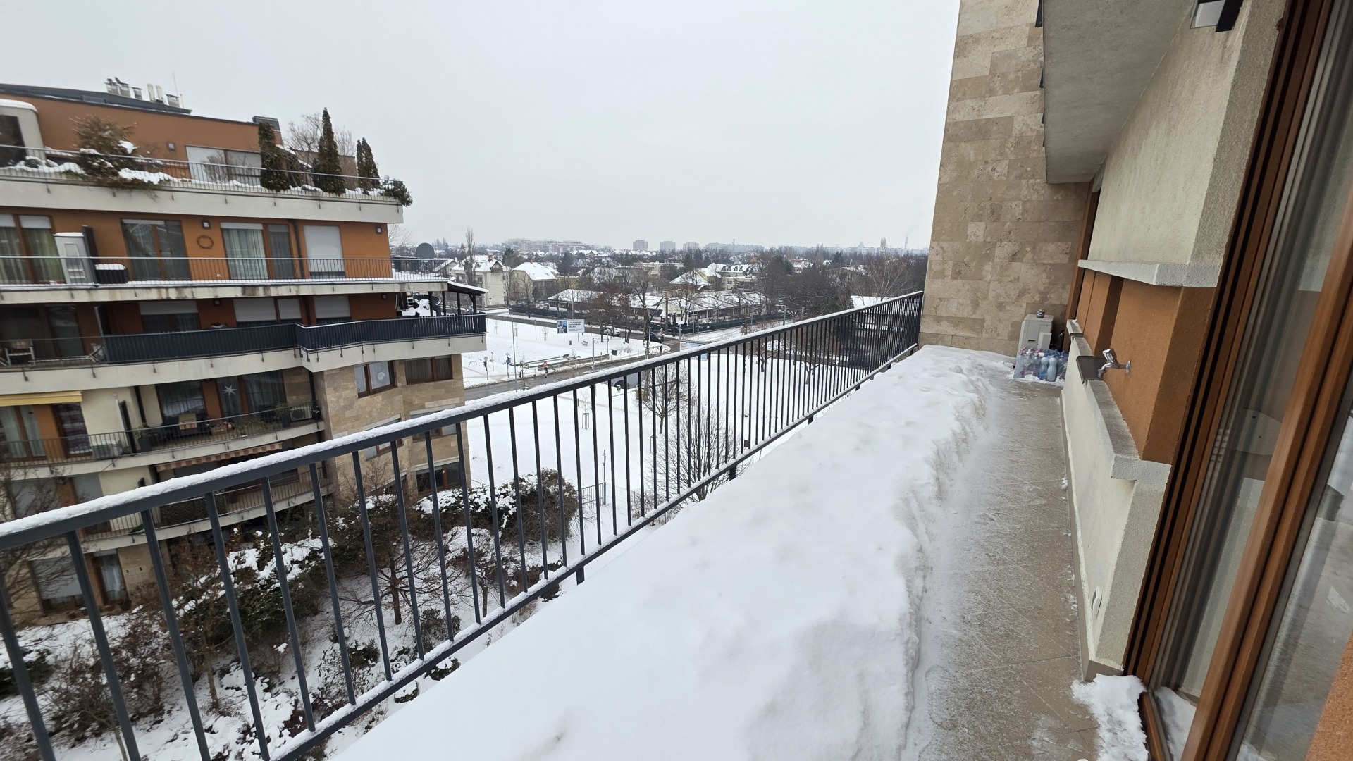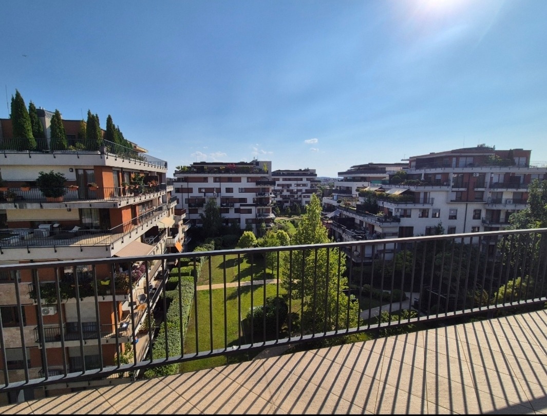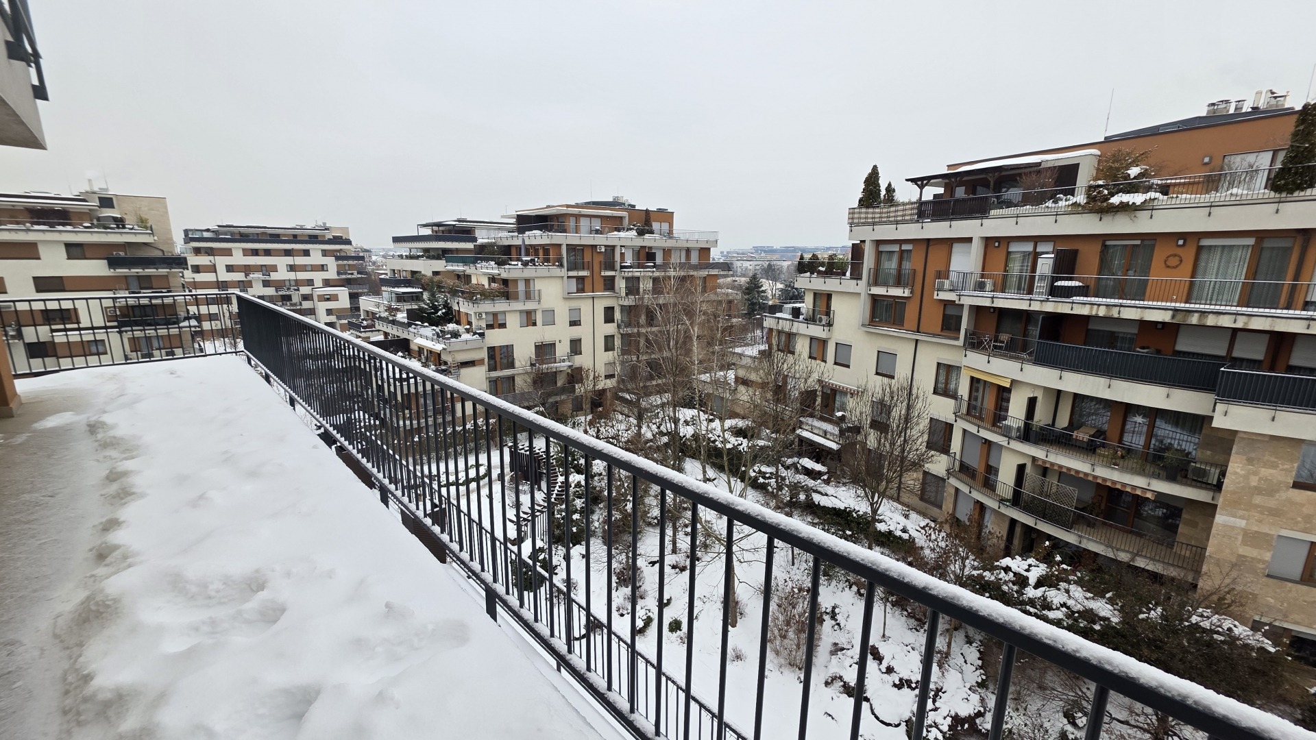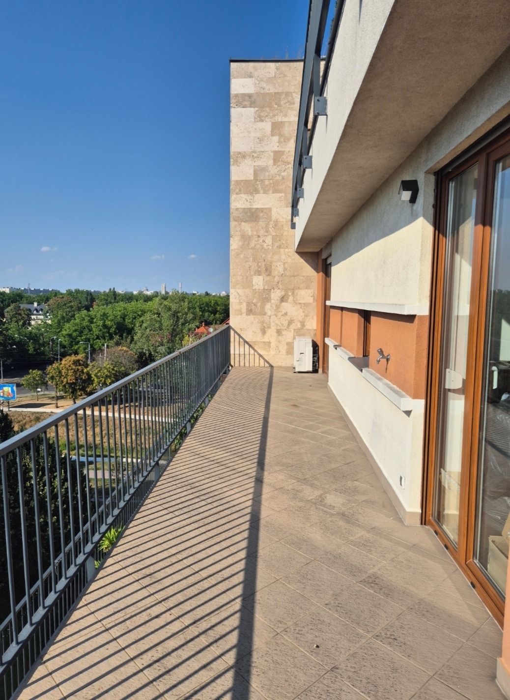 A 61 m2-es lakást, egy 40 m2-es „L” alakú terasz egészíti ki, így biztosítva mindhárom szobához a közvetlen terasz kapcsolatot.