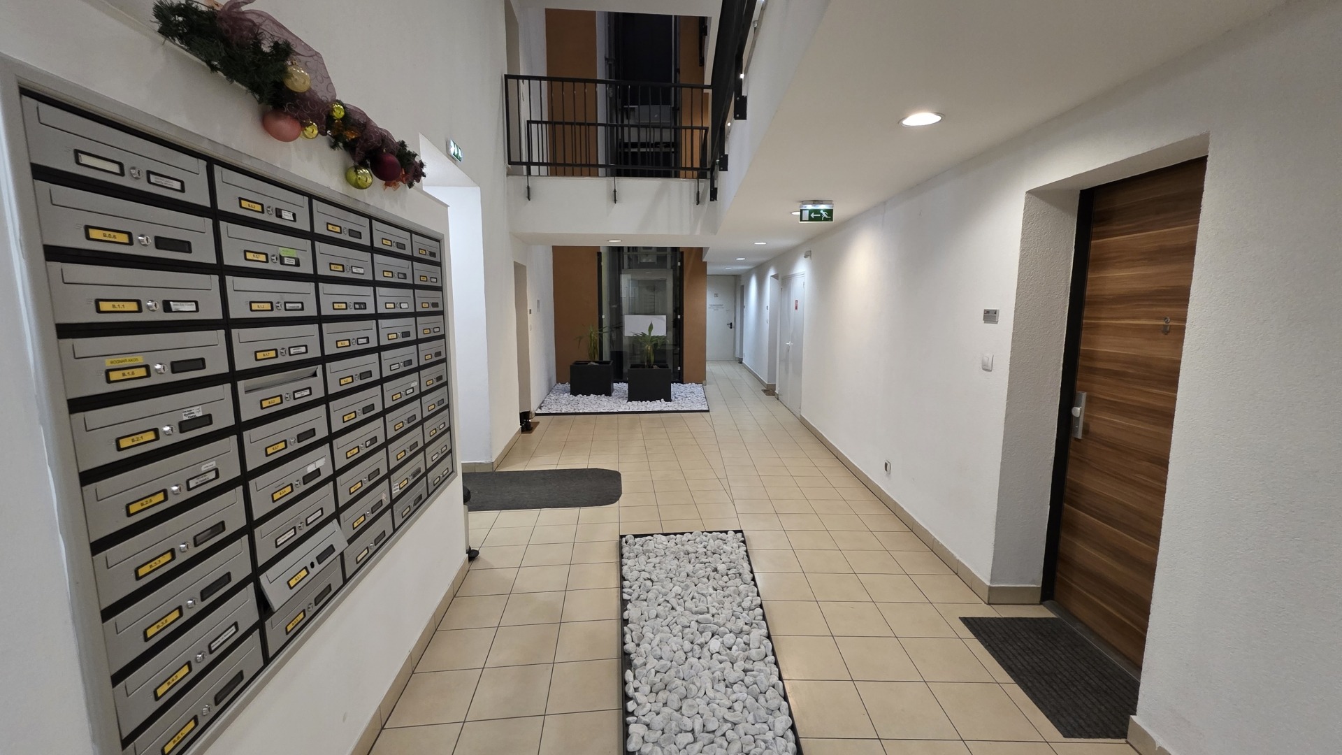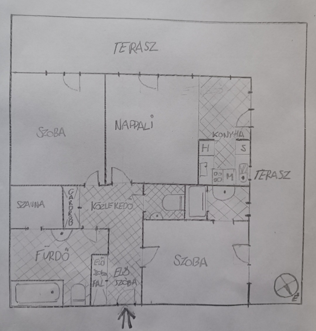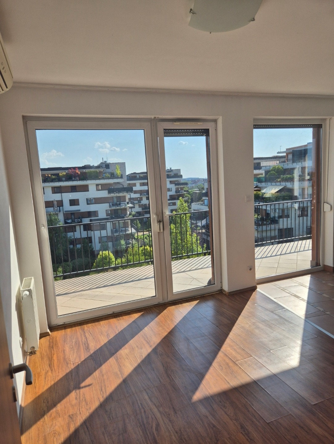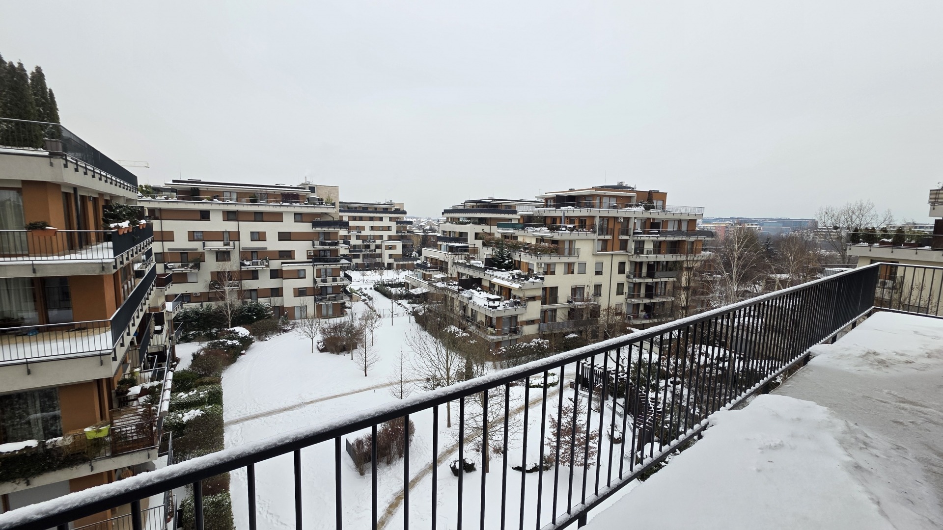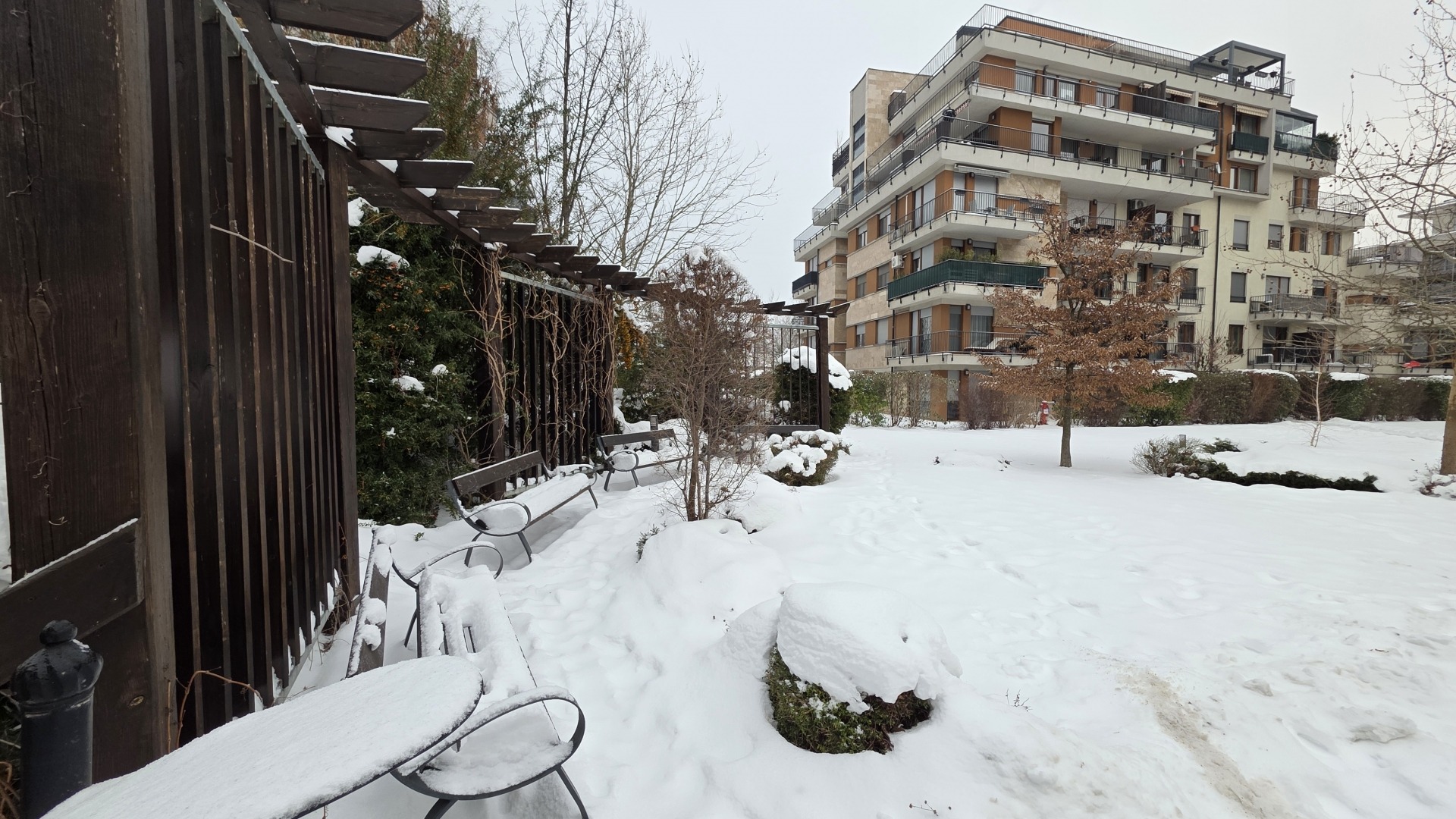 A 61 m2-es lakást, egy 40 m2-es „L” alakú terasz egészíti ki, így biztosítva mindhárom szobához a közvetlen terasz kapcsolatot.