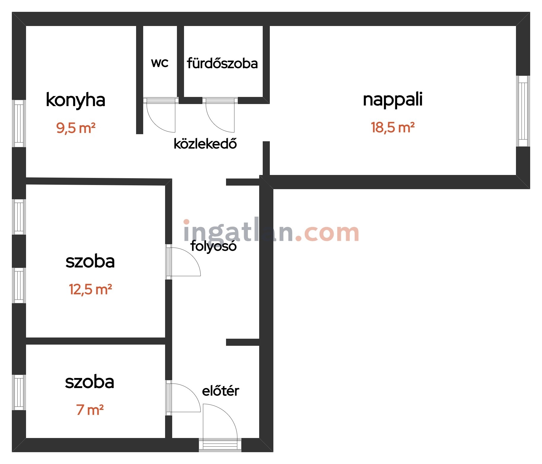 - Fürdőszoba (~4 m²),